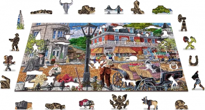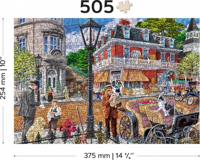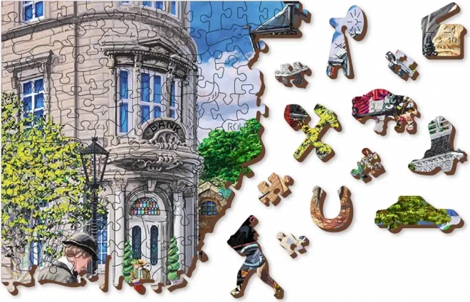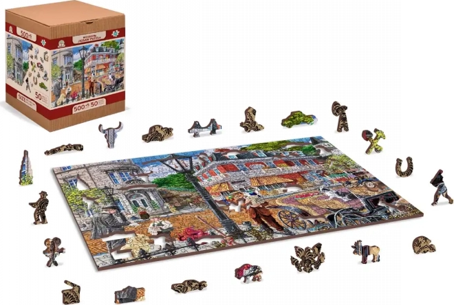 Uživajte u zaraznom slaganju s drvenim puzzlama WOODEN CITY koje donose živopisan prizor pulsirajuće povijesne ulice. Posebno oblikovani dijelovi s finim laserskim detaljima podižu zabavu i estetski dojam – neke dijelove u obliku životinja ili predmeta možete postaviti kao male figurice.