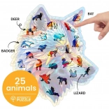 Priuštite si pametnu zabavu s drvenim puzzlama WOODEN CITY – Otmjeni vuk. Zahvaljujući posebno oblikovanim dijelovima, od kojih neki imaju oblik životinja i mogu stajati kao male figurice, slaganje je zanimljivije i zahtjevnije nego kod klasičnih puzzli. Laserom naglašeni detalji daju motivu dubinu i eleganciju.