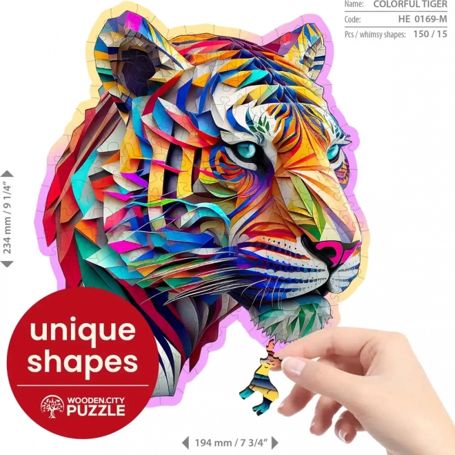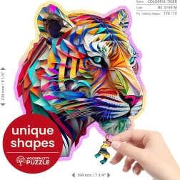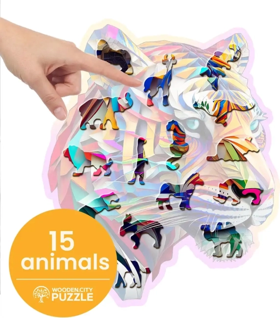 Uživajte u slaganju originalnih drvenih puzzli s motivom šarenog tigra od WOODEN CITY. Zahvaljujući jedinstveno oblikovanim dijelovima, uključujući životinjske siluete, te preciznoj laserskoj izradi, ova slagalica nudi višu razinu težine i sjajno iskustvo. Puzzle su eko-prijateljske, bez plastične ambalaže, i odličan su poklon za svaku priliku.