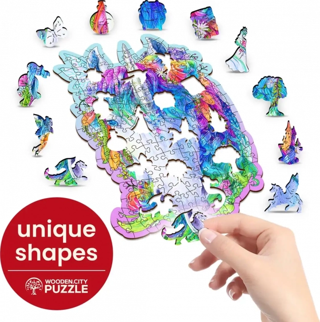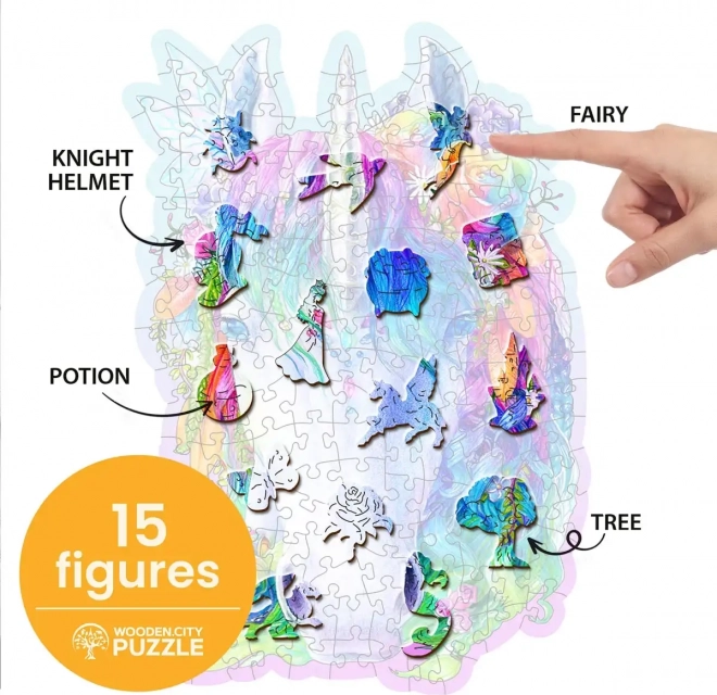 Stilske drvene puzzle s motivom jednoroga brenda WOODEN CITY donose sjajno iskustvo za ljubitelje originalnih slagalica. Laserom izrezani dijelovi s naglašenim detaljima ugodno se slažu, a neki od njih imaju oblik životinja koje se mogu postaviti i samostalno kao male figurice.