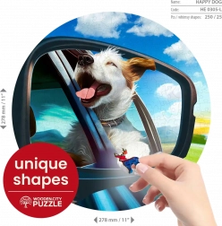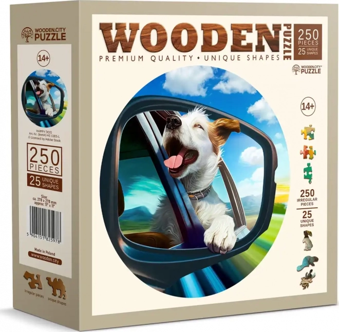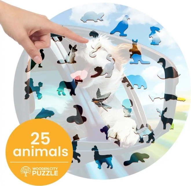 Uživajte u precizno izrađenim drvenim puzzlama WOODEN CITY s motivom veseloga psa. Lasersko naglašavanje detalja ističe ljepotu slike, a dio dijelova u obliku životinja možete koristiti i kao zasebne figurice. Zahvaljujući raznolikim oblicima puzzle imaju višu razinu težine, pa će razveseliti sve koji traže kreativni izazov.