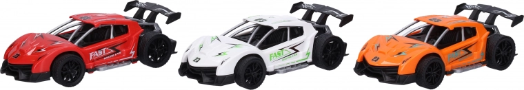Trkaći automobil na inerciju duljine 15,5 cm idealna je igračka za male vozače. Dostupan je u atraktivnim varijantama u crvenoj, narančastoj i bijeloj boji koje privlače pozornost i osiguravaju duge sate zabave.