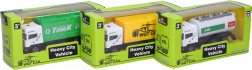 Zabavan metalni auto duljine 11,5 cm s povratnim mehanizmom (na povlačenje) za brzu vožnju. Dostupne su 3 varijante: kamion, cisterna i kamion za smeće.