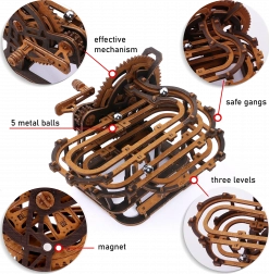 Ueivajte u fascinantnom doeivljaju s ovom drvenom 3D stazom za kuglice od Wooden City. Napravljena od kvalitetne brezove 1perplo0de, nudi iscrpne detalje i funkcionalan mehani0dki model kuglica koje se kre07u kroz labirint pokretan ru0dnim mehanizmom.