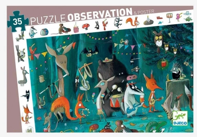 Otkrijte čaroliju glazbe s dječjim puzzlama DJECO – Šumski orkestar. Sklop od 35 čvrstih dijelova donosi veliku sliku dimenzija 61 × 38 cm i zabavnu igru pretraživanja detalja. U paketu je i plakat. Idealno za djecu od 3 godine koja će pri slaganju vježbati finu motoriku, koncentraciju i upoznavanje glazbenih instrumenata. Veliki i čvrsti dijelovi, okvir za pretraživanje s predmetima i plakat za lakše slaganje jamče sate kreativne zabave.