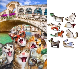 Drvene puzzle Mačići u Veneciji 2u1 donose inovativan pristup klasičnim slagalicama zahvaljujući jedinstveno oblikovanim dijelovima. Dijelovi u obliku poznatih građevina, životinja ili predmeta dodaju svakom slaganju novu dimenziju avanture. Osim toga, zahvaljujući laserski naglašenim detaljima, ovi dijelovi mogu poslužiti kao male figure.