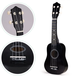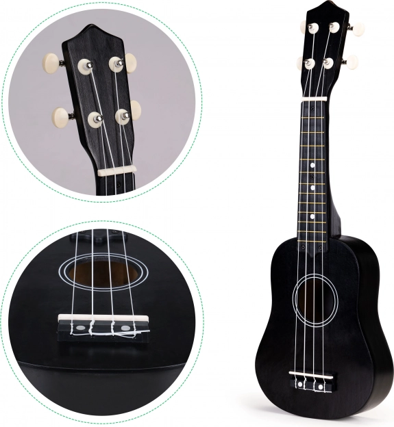 Otkrijte radost glazbe s dječjim ukulelem koje izgleda i ponaša se kao pravi instrument. Zahvaljujući štim mehanikama i najlonskim žicama djeca će naučiti svirati jednostavne pjesmice i postupno napredovati u tehnici. Kompaktna veličina i čvrsto drveno tijelo osiguravaju udobno držanje i dugi vijek trajanja.