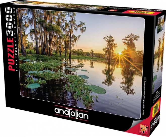 ANATOLIAN puzzle od 3000 dijelova s motivom izlaska sunca nad Duck Lakeom. Postolje za poklopac kao predložak, dimenzije 120×85 cm, mogućnost slanja nedostajućeg dijela.