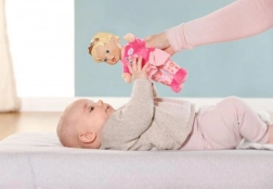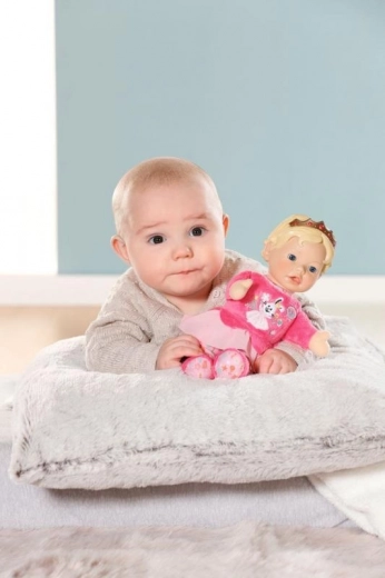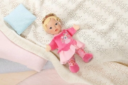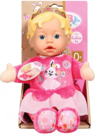 Princeza BABY born for babies idealna je prva lutka za bebe i malu djecu. Mekano tjelešce poziva na maženje, dok lagana vinilna glavica sa zlatnom krunom daje igrački kraljevski izgled. Integrirani džepići u rukama pretvaraju lutku u mačkula – dovoljno je uvući prstiće i početi pripovijedati priče.