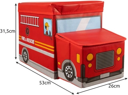 Stilska i praktična kutija za igračke u obliku vatrogasnog vozila pretvara pospremanje u zabavu. Ima velik kapacitet, sklopiva je, lako se čisti i zahvaljujući čvrstoj ojačanoj konstrukciji zadržava oblik i kada je prazna. Idealna za dječju sobu, za dječake i djevojčice.