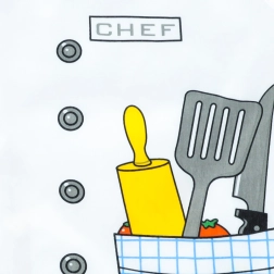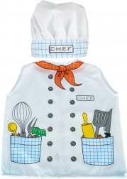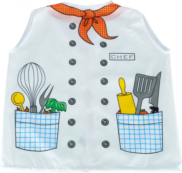 Kostim uključuje bijeli pregačasti dizajn i kuharsku kapu, što omogućava da se vaše dijete osjeća kao pravi kuhar.