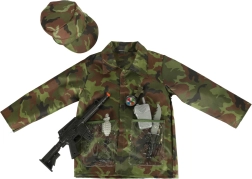Kostim vojne uniforme je idealan za sjajno vrijeme na maskenbalu ili jednostavno za oživljavanje svakodnevne igre. Zahvaljujući ovom kompletu, dijete može postati hrabri vojnik, bilo kod kuće ili na školskoj priredbi. Kostim je izrađen od udobnog materijala, prikladnog za djecu od 3 do 8 godina.