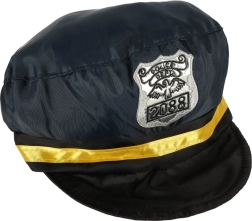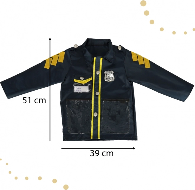 Kostim uključuje kaput i šešir s autentičnim detaljima poput značke i drugih dodataka koji imitiraju pravu policijsku uniformu.