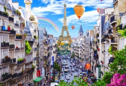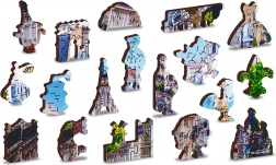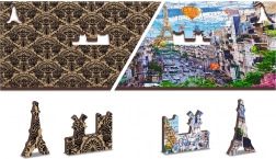 Drvene puzzle Užurbani Pariz od WOODEN CITY su jedinstvene po svojoj dvostranoj konstrukciji i posebno oblikovanim dijelovima koji oživljavaju scenu. Slaganje je zahtjevnije zbog različitih oblika dijelova, ali ujedno zabavnije. Predstavlja izazov i za iskusne ljubitelje slagalica.