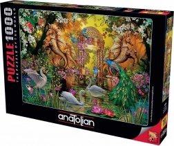 Privlačan motiv tajanstvenog vrta razveselit će sve ljubitelje slagalica. Uživajte u udobnom slaganju s praktičnim stalkom, u koji se može postaviti poklopac kutije kao predložak.