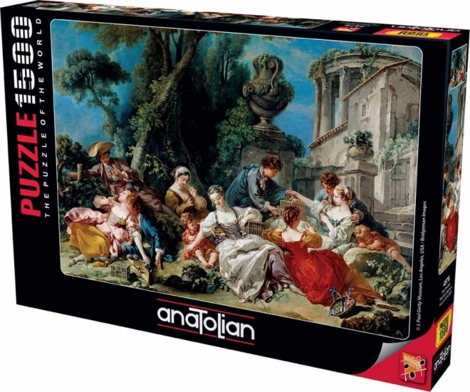 Otkrijte vrhunski puzzle ANATOLIAN s motivom Lovci ptica, koji donosi 1500 pažljivo izrezanih dijelova za duge sate zabave i odmora. Zahvaljujući praktičnom stalku možete u držač postaviti poklopac kutije i tako imati motiv stalno pred očima za udobnije slaganje.