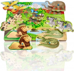 Zvučna slagalica Životinje iz zoološkog vrta idealan je dar za vašu djecu koji spaja igru i učenje. Uz ovu zabavnu igračku djeca će otkriti zvukove različitih životinja: od lavova do slonova.