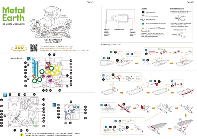 Uživajte u preciznoj metalnoj izradi i autentičnim detaljima legende automobilske povijesti. Model iz serije Metal Earth sastavlja se od predrezanih čeličnih pločica koje jednostavno izvadite, savijete i uklopite jedna u drugu – bez ljepila. Rezultat je čvrsta i efektna minijatura Forda Model T Runabout iz 1925.