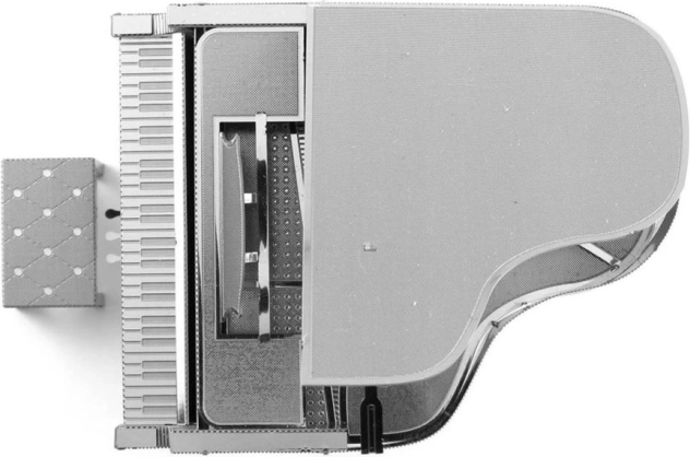 Laserski gravirani dijelovi vjerno prikazuju klavijaturu, pedale i površinu klavira za iznimno realističan izgled.