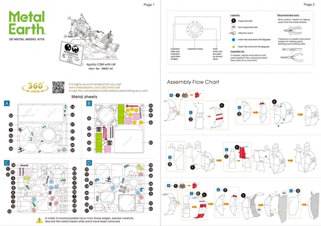 Otkrijte čaroliju preciznosti i strpljenja s 3D puzzlama METAL EARTH – Apollo CSM s lunarnim modulom. Od čeličnih pločica sastavit ćete detaljnu repliku kultne svemirske misije. Zahvaljujući laserskom graviranju istaknut će se i najmanji detalji, a gotov model postat će impresivna dekoracija za dom, ured ili učionicu. Pakiranje sadrži 3 velike i 1 malu čeličnu pločicu s dijelovima te detaljne upute. Alat nije uključen u pakiranje.