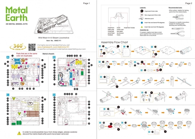 Uzbudljiv izazov, užitak pri sastavljanju i blistav rezultat – to su METAL EARTH modeli! Model iz kolekcije Divlji zapad za sve obožavatelje Divljeg zapada! Sastavljanje 3D puzzli METAL EARTH zahtijeva strpljenje i spretne ruke. Rezultat rada u potpunosti nadoknađuje uloženi trud! Minijaturne replike posebno su dojmljiva i privlačna dekoracija ne samo kod kuće, već i u uredu ili školi. Iz kvadratnih čeličnih pločica (11 x 11 cm) pod vašim će rukama izrasti detaljno razrađen, fascinantan model. Autentičan izgled 3D puzzli METAL EARTH postignut je zahvaljujući detaljnom laserskom graviranju. Pakiranje sadrži 4 čelične pločice i upute za sastavljanje. Alat nije uključen u pakiranje. RADNI POSTUPAK: Pojedine dijelove izvadite iz metalnih pločica; po potrebi upotrijebite male rezače žice/štipačice (nisu uključeni). Dijelovi se spajaju pomoću zasuna koji se sastoje od kvačice (jezička) i otvora. Jezičak savijte uz pomoć malih tankih kliješta (nisu uključena) te postupno spojite sve zasune dok ne nastane vrlo realističan majstorski uradak! Preporučena dob: od 14 godina.