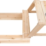 Kompaktan dizajn idealan je za terase, balkone ili manje vrtove. Zahvaljujući nekoliko mjesta za sjedenje nudi beskrajne mogućnosti za zajedničku igru i kreativne aktivnosti. Robusni kotači omogućuju lako premještanje pješčanog igrališta prema potrebi. Kvalitetna tekstilna navlaka Oxford štiti pješčanik kada se ne koristi. Preporučujemo zaštitnu lazuru za drvo za njegovu dugotrajnu ljepotu i funkcionalnost.