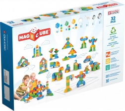 Otkrijte kreativni svijet građevnog seta Geomag Magicube Shapes s 32 dijela, koji kombinira magnetne kockice, tri dodatna oblika i četiri kotačića. Potiče finu motoriku, kreativnost i prostornu maštu. Proizvedeno u Švicarskoj od reciklirane plastike, prikladno već od 1 godine.