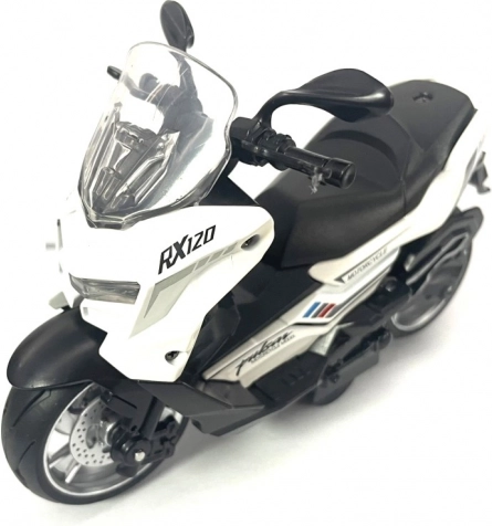 Otkrijte čar malog, ali detaljno izrađenog modela motocikla RX120, koji je izvrstan kako za kolekcionare, tako i za djecu za igru. Zahvaljujući svojim realnim elementima izgleda kao pravi motocikl: od sjedala, preko upravljača, pa sve do pokretnih kotača.