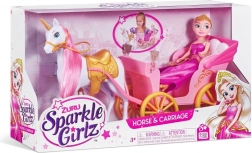 Otkrijte čaroban svijet mašte s setom SPARKLE GIRLZ lutka princeza s jednorogom i kočijom. U pakiranju se nalazi elegantna princeza u svjetlucavoj ružičastoj haljini, očaravajući bijeli jednorog s ružičastom grivom i ružičasto‑zlatna kočija za beskrajne priče. Duga češljiva kosa, odvojiva kočija i mogućnost mijenjanja odjeće i dodataka s drugim lutkama Sparkle Girlz donose sate kreativne igre. Prikladno od 3 godine.