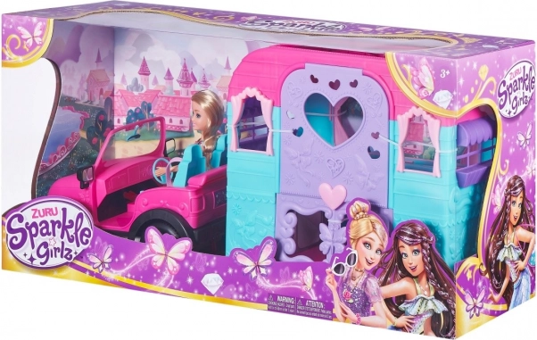 Ovaj šareni set za igru donosi sve za male putnike: elegantni otvoreni džip spojen s prikolicom s dekoracijama i lutku visine približno 26,5 cm. Djeca će uživati u satima maštovite igre – od izleta u prirodu do kampiranja pod zvijezdama.
