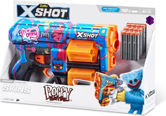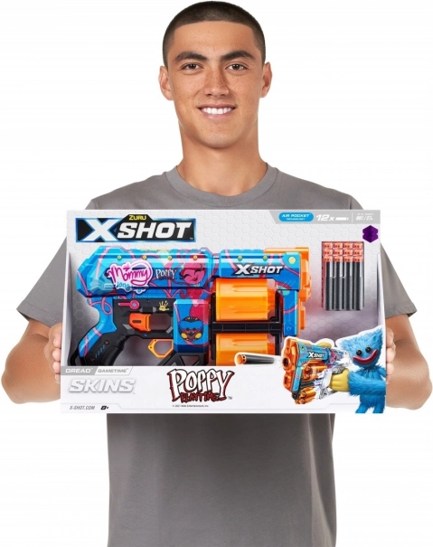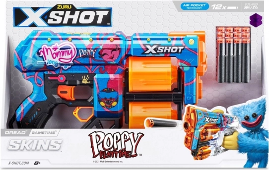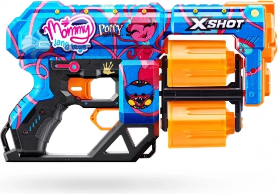 Doživite akcijsku zabavu s pjenastim blasterom X-Shot Skins Dread Poppy Playtime. Zahvaljujući okretnom bubnju za 12 strelica, jednostavnom punjenju i laganom ergonomskom dizajnu, dinamičnu igru uživat će i djeca i odrasli. Stilski dizajn s motivima Poppy Playtime i Mommy Long Legs privući će pažnju u svakoj bitci.