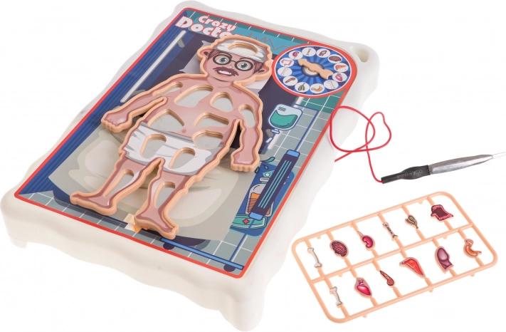 Sadrži pacijenta s igračom pločom i kazaljkom, pincetu i 12 organa za potpuno interaktivno iskustvo.