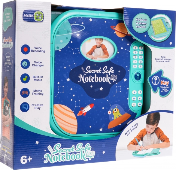 Dječji tajni dnevnik s kodnim lokotom koji nudi ne samo pohranu važnih bilješki, već i zabavne i edukativne funkcije. Ima raznobojni dizajn s planetama i raketama te nudi mogućnost osobne prilagodbe. Prije prve upotrebe potrebno je postaviti četveroznamenkastu lozinku koja osigurava zaštitu svih tajni unutra.