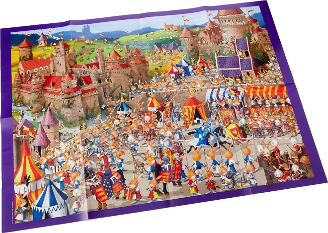 Duhovite puzzle HEYE 1000 dijelova – Bitka zečeva autora Ruyera. Dimenzije nakon slaganja 50 × 70 cm. Odličan poklon za ljubitelje slaganja i zabave.