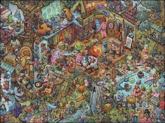 Ovaj set slagalica donosi detaljnu, humorom prožetu scenu „zabava s prijateljima“, koja će razveseliti svakog fana duhovitih ilustracija. Precizni izrezi, intenzivne boje i kvalitetan tisak osiguravaju da se pojedini dijelovi čvrsto uklapaju, a rezultat izgleda sjajno i izbliza.