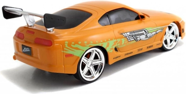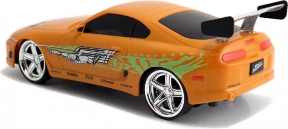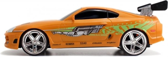 Detaljna narančasta Toyota Supra inspirirana BRIANOVIM vozilom iz BRZIH I ŽESTOKIH s autentičnim naljepnicama i stražnjim krilom.