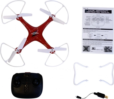 - Dron, daljinski upravljač, USB kabel za punjenje, štitnici elisa, zamjenske elise, upute