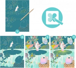 Ovaj originalni likovni set donosi očaravajuće motive jezerske vile koji se postupno otkrivaju uz pomoć priložene olovke za grebanje. Zahvaljujući jasnim ilustriranim uputama, stvaranje je jednostavno i zabavno. Završene slike istaknut će se kao dekoracija dječje sobe.