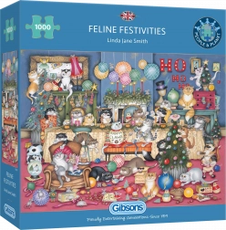 GIBSONS Slagalica Mačji blagdani razveselit će svakog ljubitelja mačaka. Slagalica sadrži 1000 dijelova koji zajedno čine zadivljujuću mačju scenu.