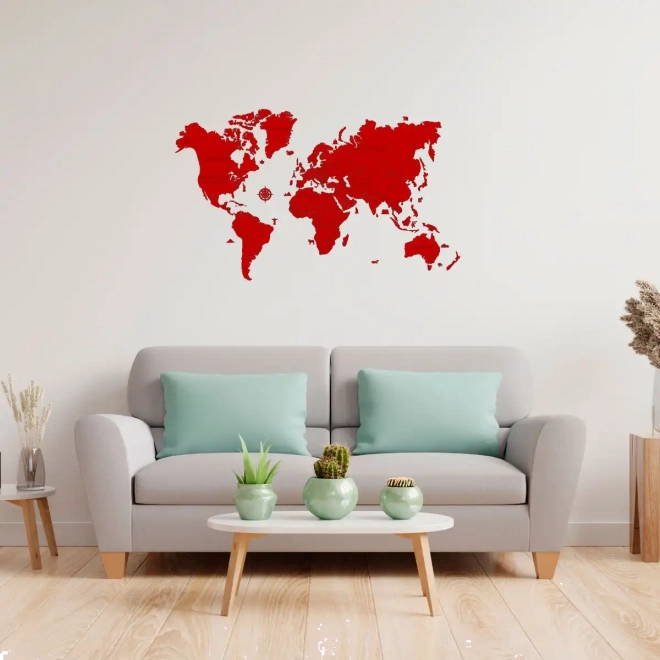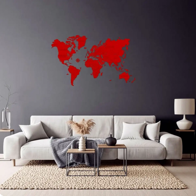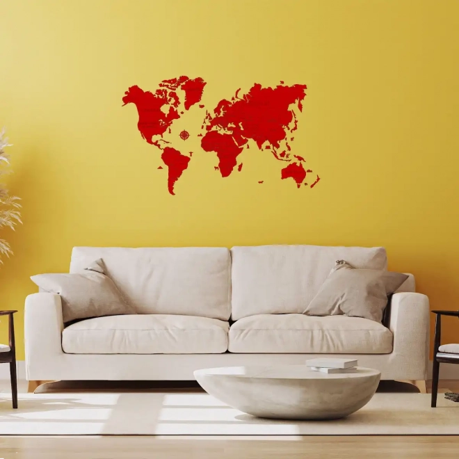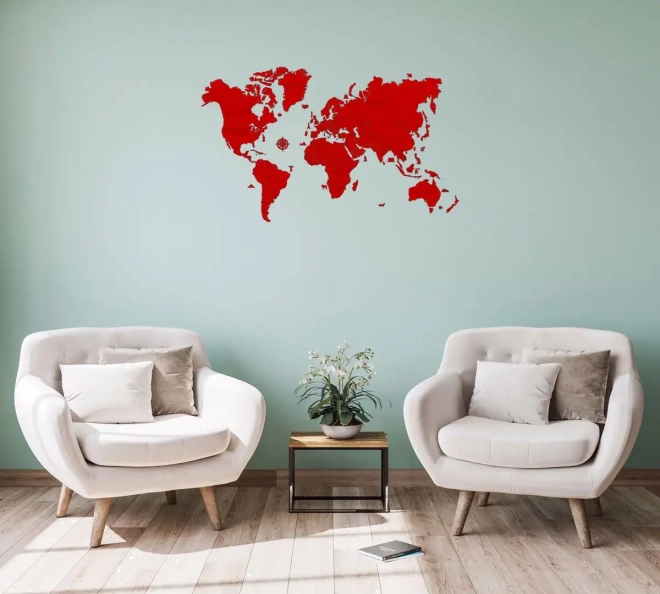Stvorite kod kuće ili u uredu upečatljiv dizajnerski element. Ova ručno oslikana drvena karta svijeta u crvenoj boji donosi čiste linije, moderan izgled i jednostavnu instalaciju pomoću priložene obostrane ljepljive trake. Zahvaljujući preciznom laserskom rezanju od brezove šperploče ističe se detaljnošću i izdržljivošću.