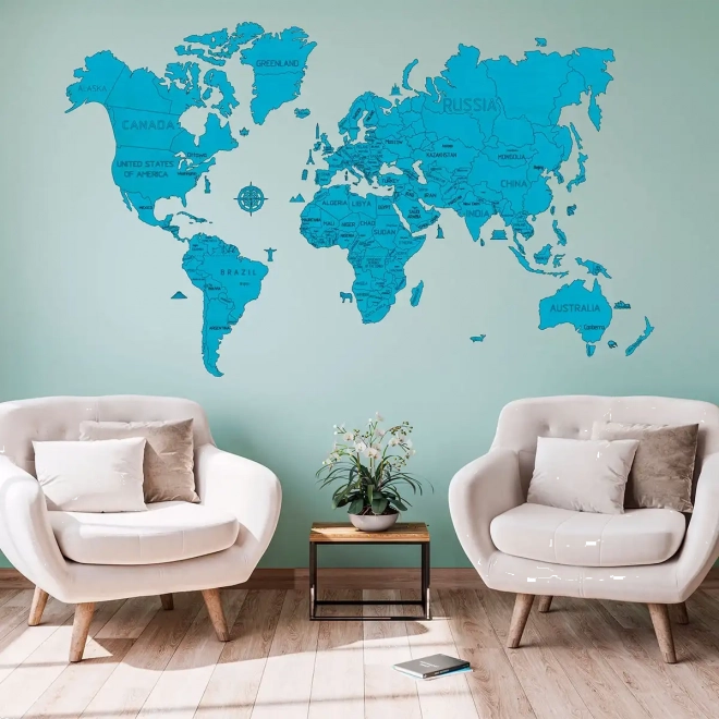 Izrađena od ekoloških drvenih materijala i obrađena s naglaskom na detalje, karta je lagana, izdržljiva i ugodna na dodir – drvo je dovoljno mekano za zabadanje mini zastavica. Instalacija je brza i jednostavna: složite je i pomoću obostrane trake postavite na zid. Dimenzija složene karte je 1200 × 800 mm, što je idealna veličina iznad sofe, stola ili kreveta.