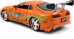 Ikonična Toyota Supra 1995 iz filmske serije FAST & FURIOUS kao detaljan metalni model u mjerilu 1:24. Nudi otvarajuća vrata, poklopac motora i prtljažnik, uklonjivi krov te precizan lak i tisak prema filmskom originalu. Idealan sakupljački model za ljubitelje brzih automobila od 8 godina naviše.