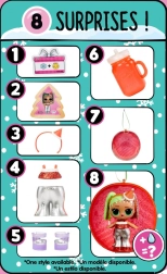 Svaka ružičasta kugla donosi postupno otkrivanje 8 iznenađenja koja će djecu držati u neizvjesnosti od prvog povlačenja trake do posljednjeg dodatka.