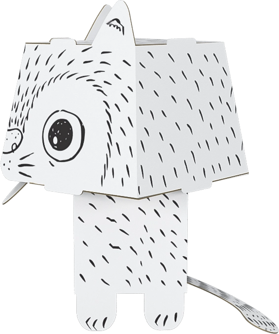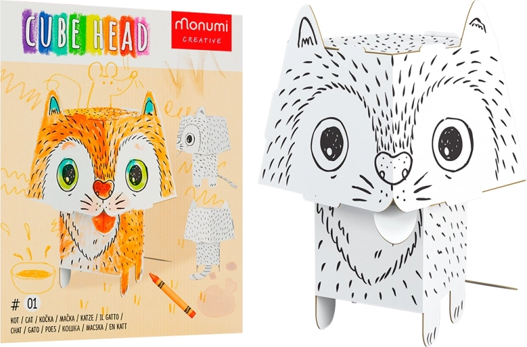 Otkrijte kreativnu zabavu za djecu: papirnata 3D slagalica za bojanje u obliku mačke. Model od kvalitetnog bijelog kartona ima precizno izrezane dijelove koje lako sastavite bez ljepila i škara. Stabilno, lagano i spremno za bojanje bojicama, flomasterima, markerima i bojama.