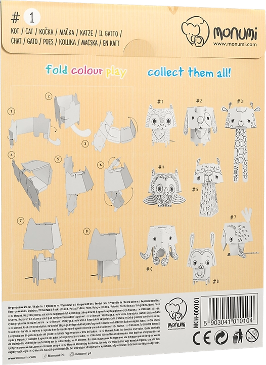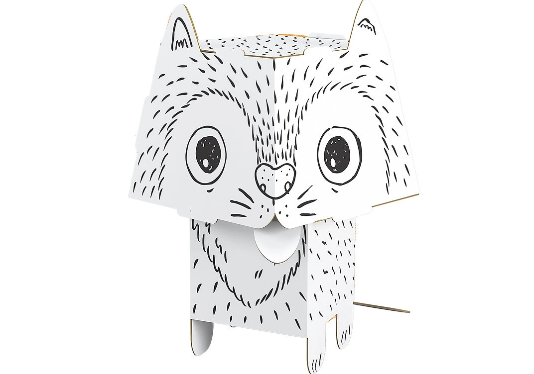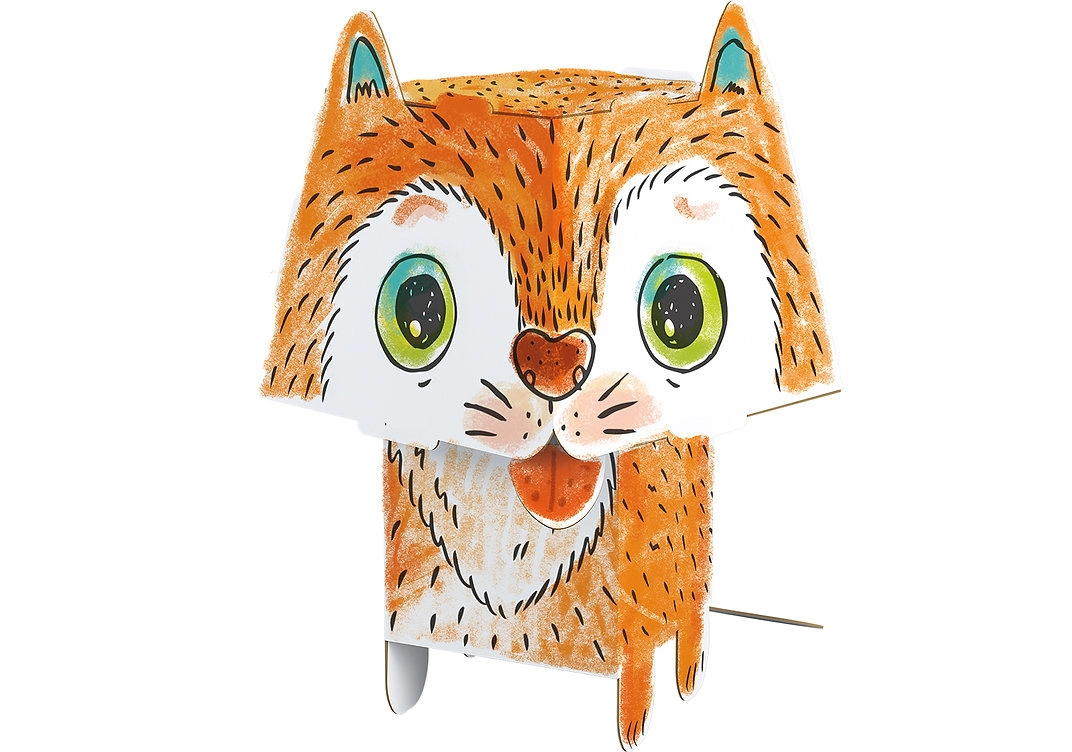 Ova simpatična mačka s velikom glavom oduševit će male kreativce. Zahvaljujući precizno izrezanim dijelovima, sastavljanje ide lako i ne zahtijeva nikakve alate. Na stražnjoj strani pakiranja nalazi se jasan slikovni priručnik.
