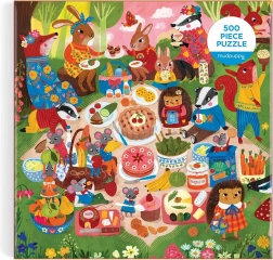Otkrijte kvalitetne obiteljske puzzle s motivom šumskog piknika ilustratorice Christine Chitnis. Zahvaljujući 500 precizno izrezanim dijelovima uživat ćete u ugodnom izazovu i lijepom rezultatu u kvadratnom formatu 51 × 51 cm. Mat površina uklanja odsjaje i jamči vjernost boja i fine detalje.