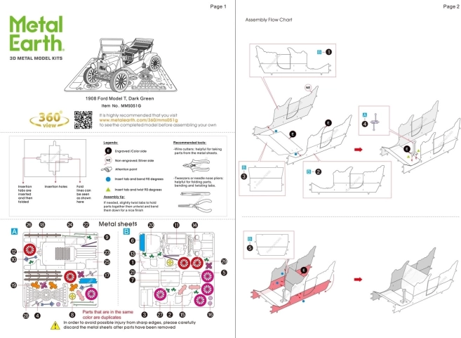 Sadrži dvije čelične pločice od kojih ćete sastaviti detaljno razrađen model. Upozorenje: alat nije uključen u pakiranje. Za spajanje dijelova potrebno je koristiti male kliješta i rezače žice. Nakon spajanja svih dijelova nastaje majstorski primjerak povijesnog Fordova vozila.