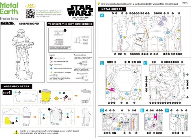 Sastavni dio pakiranja su tri metalna listića s izbijenim dijelovima, pinceta i detaljne upute za sastavljanje. Za spajanje dijelova koristite kukice i tanke kliješta (nisu uključena u pakiranje).