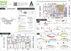 Pojedinačne komponente istiskuju se iz pločica i spajaju pomoću zasuna s kukicama – bez ljepila. Preporučujemo koristiti male štih-kliješta i ravne pincete za čiste savijene rubove i precizno poravnanje. Gotov model ima dimenzije oko 14 × 13,2 × 4,9 cm i savršeno će upotpuniti kolekciju ljubitelja filma, sci‑fi tehnologije i metalnih modela.