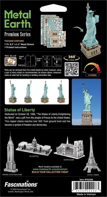 Uživajte u jedinstvenom doživljaju slaganja realistične replike Kipa slobode od metala. Od tankih čeličnih pločica nastaje zahvaljujući laserskom graviranju vjerno izrađen model s finim detaljima krune, baklje i postolja. Gotov model postaje upadljiv dizajnerski dodatak interijeru.
